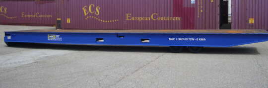 Open frame trailers to reduce weight for oversea transportation. Equipped with container pins, twist locks or ISO holes to secure all kind of containers. Two stage high for double stack.