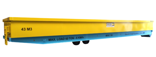 Houcon Roll Trailers or so-called MAFI trailers or low bed trailers, are equipped with rocker beams, oscillating axles and press-on solid tires to distribute the weight equally over all the wheels up to 250 ton load capacity. For Roll-on Roll-of operation, on the terminal ore industrial use for on non-public road only.