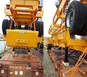 Shipment is on its way! From our Houcon Trading& Equipment division, we shipped 2 pcs HOUCON bumpcar 60T used container trailers, and 2 Tergberg...